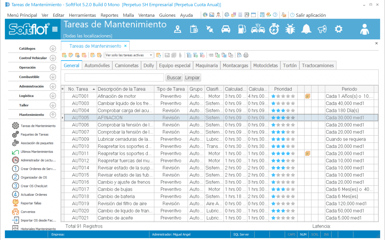 - Control y eficiencia de su personal técnico mecánico si tiene su propio taller.